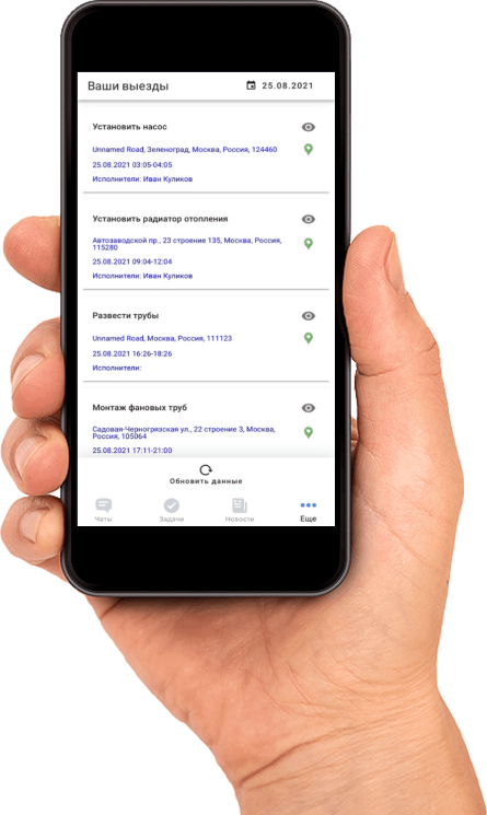 Для вашего удобства мы интегрировали наше приложение в стандартное мобильное приложение Bitrix24. Теперь все ваши сотрудники могут получать маршрутные листы и отмечать выполнение задач непосредственно на месте.